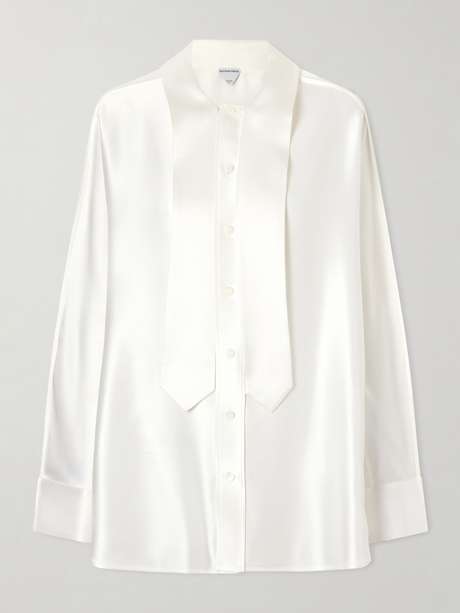 The relaxed, drop-shoulder design of this shirt illustrates Bottega Veneta's contemporary vision of luxury. Cut from lustrous silk-satin, it's detailed with languid pussy-bow ties that can be knotted or left loose. Tuck it into high-waisted trousers or a midi skirt.