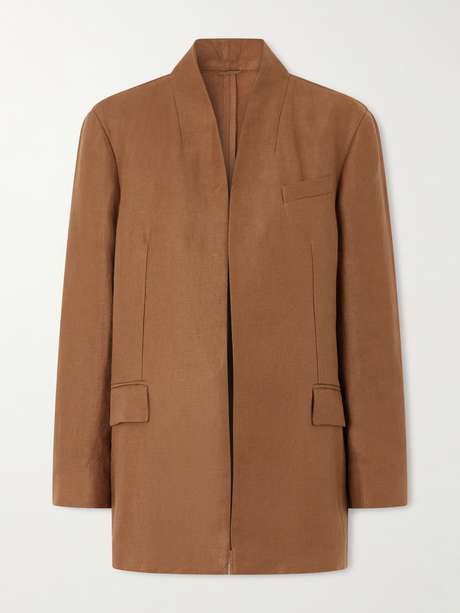 Brunello Cucinelli's blazer is masterfully tailored, so you'll wear it for years and years to come. It's been made in Italy from breathable linen-twill with a sophisticated stand collar and straight, longline shape inspired by menswear styles. A line of glistening Monili beads embellish the nape.