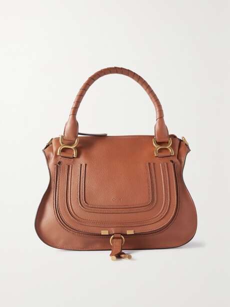 Chloé's best-selling 'Marcie' tote may be updated in fresh hues each season, but the signature details - like the equestrian-style stitching and cool saddle shape - remain the same. This tan version is made from supple textured-leather and has a spacious canvas-lined interior that will easily fit your daily essentials plus a water bottle or spare change of flats. Carry yours by the hand-wrapped top handles or detachable shoulder strap.