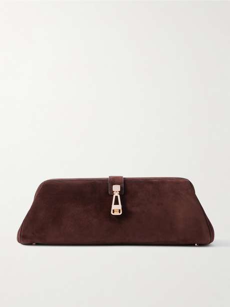 Gabriela Hearst's 'Paola' clutch is inspired by vintage styles. Crafted in Italy from smooth suede, it has an elongated shape with protective feet at the base and an optional shoulder strap so you can go hands-free. Stow your cards, lipstick and pack of mints in the leather-lined interior.