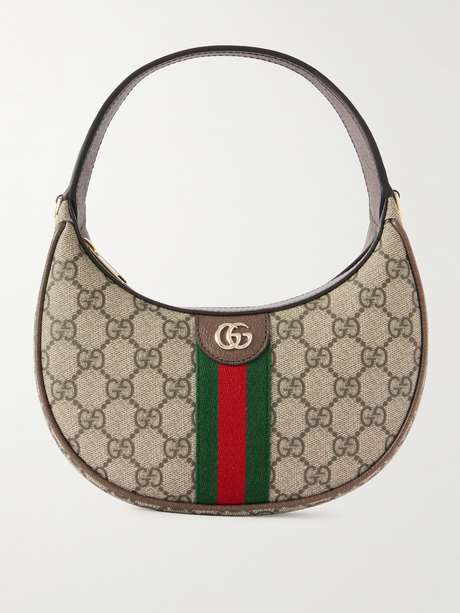 Gucci's bag is part of the label's 'Ophidia' collection. Crafted in Italy from monogrammed coated-canvas, it has a structured, crescent shape trimmed with tonal leather and features the signature red and green webbing along the center. The internal slip pockets allow you to forego a wallet, leaving room for your keys, phone, compact and sunglasses.