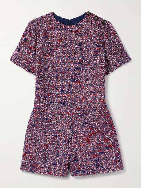 Sophisticated yet playful, Gucci's playsuit is made from wool-blend bouclé-tweed with exaggerated knots. It's lined with crepe de chine, which gives it a smooth feel and it has a trio of buttons featuring the 'GG' logo along the shoulder.