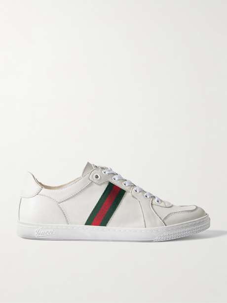 GUCCI Distressed webbing-trimmed leather sneakers