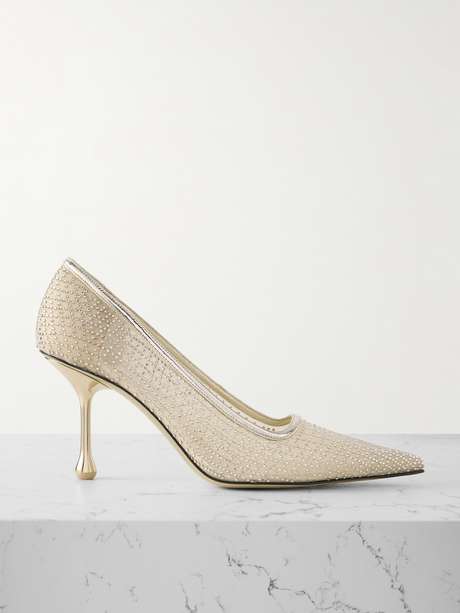 Jimmy Choo's party-ready 'Ixia' pumps are encrusted with crystals that'll light up the dance floor. Made from mesh, they're neatly outlined with mirrored-leather and are raised on 80mm stilettos.