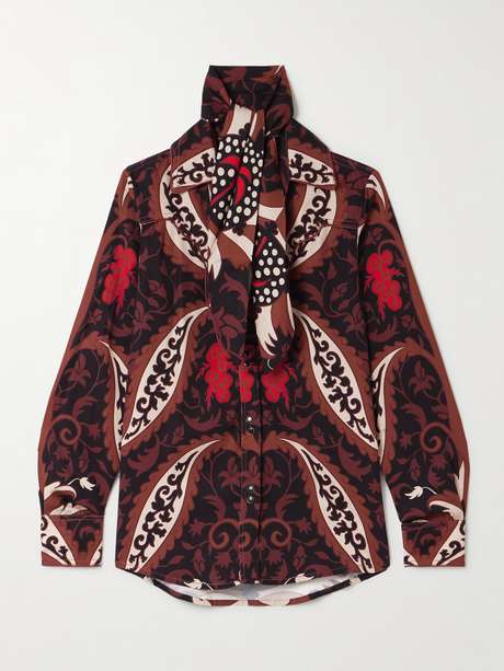 Johanna Ortiz's 'Hacia Puerto' shirt has a Western influence, as seen in the stitching along the yoke. It's cut from printed recycled-twill and has a curved hem. Style it half-tucked into your favorite pair of jeans or the coordinating skirt in our edit.