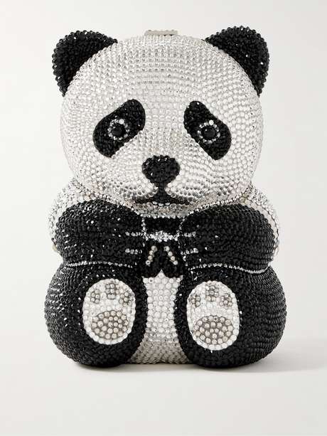 Judith Leiber Couture's unique creations encourage you to have fun with your style. This 'Teddy Bear' clutch depicts an adorable panda, crafted from silver-tone metal and adorned with crystals for a glamorous effect. Keep your keys and lipstick inside.