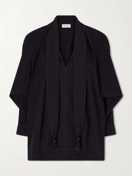 The bead-embellished scarf ties lend an effortless charm to Lemaire's blouse. Made from crinkled cotton-crepe, it's detailed with contrast topstitching and has a boxy, loose shape with three-quarter raglan sleeves. Tuck yours into high-waisted jeans or pants.