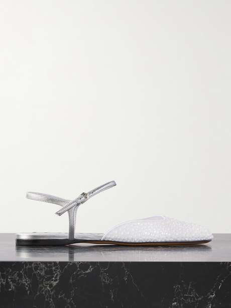Loewe's ballet flats are an elegant choice for everything from festive parties to bridal events. Made from metallic leather, they have mesh square toes embellished with sparkling crystals. The adjustable ankle strap will keep them secure and comfortable throughout the night.
