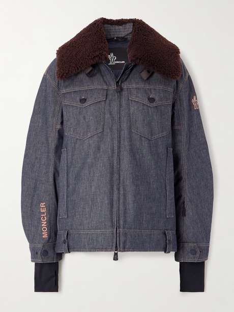 Moncler Grenoble's 'Yunque' jacket is defined by its plush shearling collar, coolly resembling vintage aviator styles. It's made from down-filled denim and has sporty internal gaiters with thumbholes.