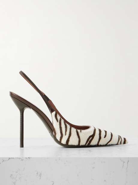 Paris Texas' 'Lidia' pumps have been made in Italy from zebra-print calf hair and trimmed with smooth leather. Set on 105mm heels, they have pointed toes and elasticated slingback straps to keep them comfortably secure.