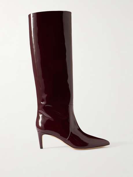 Paris Texas calls its 'Stiletto' knee boots its "most iconic style", re-imagined each season in fresh colors and textures. This version is made from glossy patent-leather with pointed toes and sleek heels. Show yours off with short hemlines.