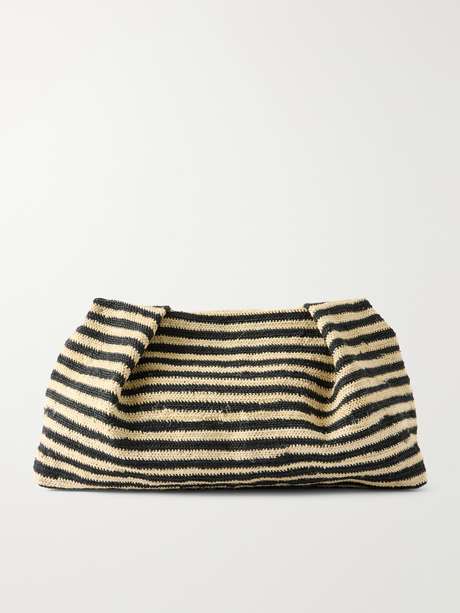 Sensi Studio's clutch is made from two-tone sisal that's woven in a striped motif - the rare material is only made in a few communities within the Andes Region of Ecuador. It's designed in a slouchy silhouette enhanced by pleats. Stow your sunglasses, phone and wallet in the spacious canvas interior.