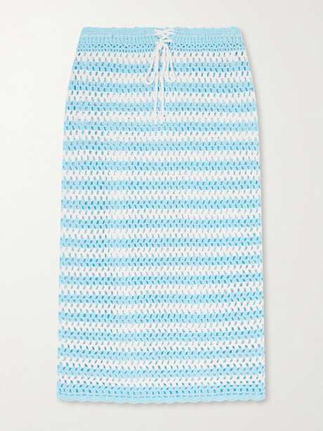 SIMKHAI Welles striped crocheted cotton midi skirt