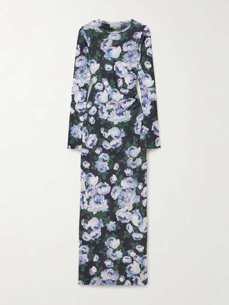STELLA MCCARTNEY Gathered floral-print stretch-mesh maxi dress