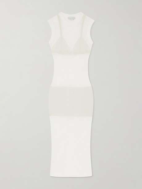 Stella McCartney's dress is defined by its sculpted, close-fitting silhouette. Made from crocheted cotton, it’s panelled to frame the body before falling to a streamlined maxi hem.