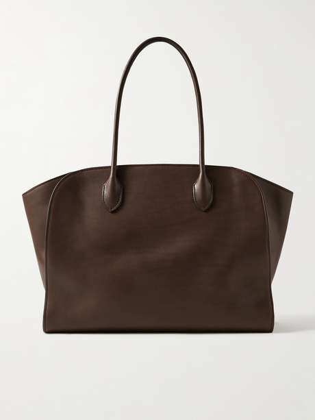 The Row's 'Marlo' tote is modeled on the brand's iconic 'Margaux' style. Made in Italy from dark-brown leather, it has the same rounded shape with expandable sides and plenty of space inside for everything you need for an overnight trip - think change of clothes, water bottle and toiletries.