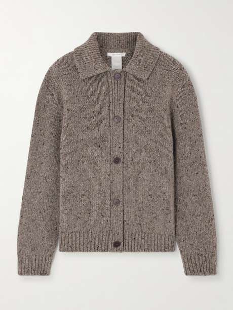 Colder months call for cozy staples like The Row's 'Mauri' cardigan. Perfect for layering, it's knitted from sumptuous mélange cashmere in a loose fit and has a relaxed collar.