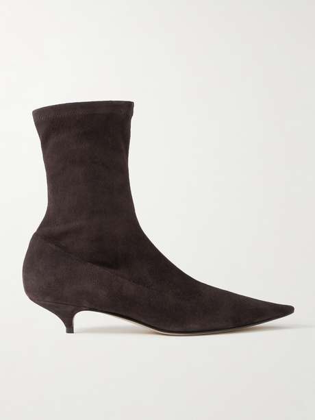 The Row's ankle boots boast the same angular silhouette as the brand's signature 'Liisa' pumps. Made in Italy from smooth suede, they're set on manageable kitten heels and have a snug, sock-like fit.