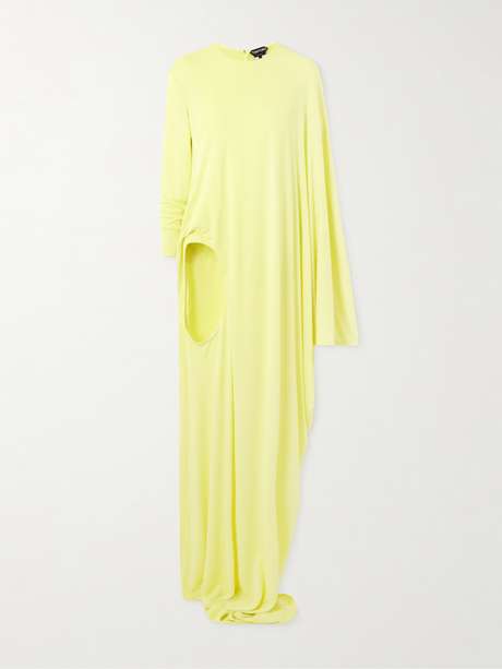 TOM FORD's gown comes in an electric shade of yellow that lit up the Fall '25 runway. It's cut from fluid crepe-jersey in a flowing asymmetric shape with a daringly high side slit. Style yours with bold makeup and sleek heels.