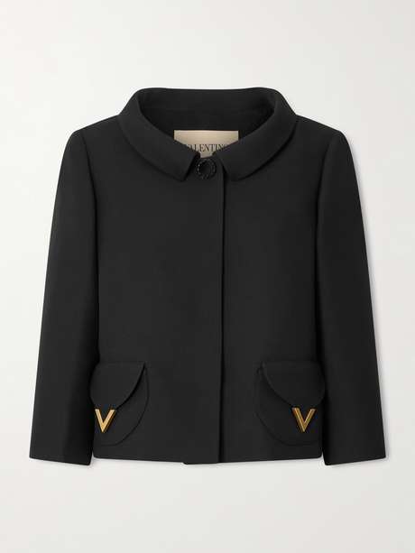 Valentino Garavani's jacket is slightly cropped – the result feels editorial. Evoking '60s tailoring, it's neatly made from wool and silk-blend crepe and shines with monogram plaques peaking from either pocket.
