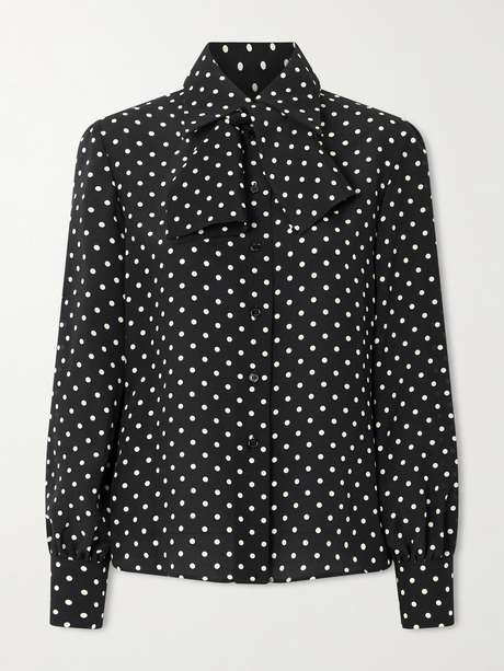 Valentino Garavani's blouse is detailed with a coordinating knotted tie at the collar, which adds a little vintage charm. It's been made in Italy from silk crepe de chine and patterned with timeless polka dots.