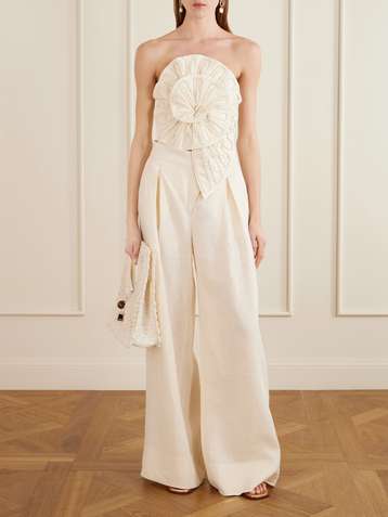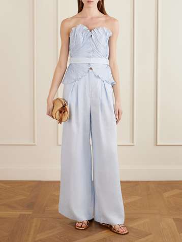 De Tres strapless pleated linen top