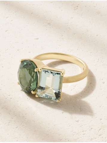 Gemmy Gem 18-karat gold, tourmaline and aquamarine ring