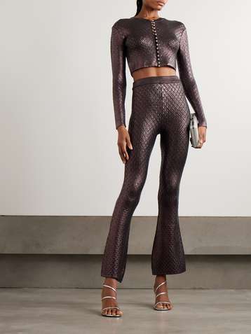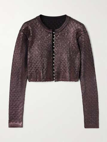 Cropped metallic jacquard-knit cardigan