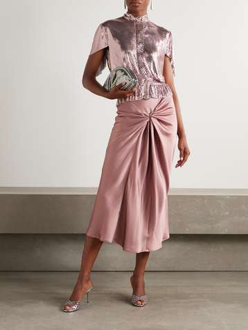 Embellished gathered satin-jersey T-shirt