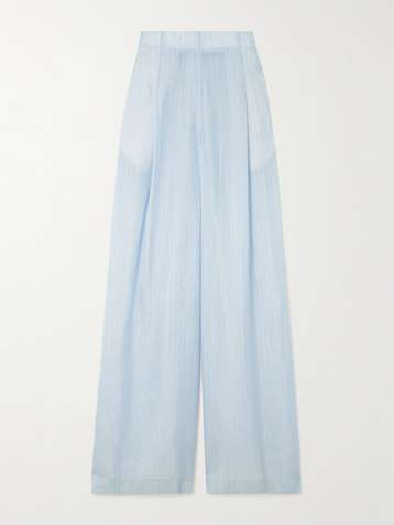 Silk-trimmed grain de poudre wool-blend barrel-leg pants