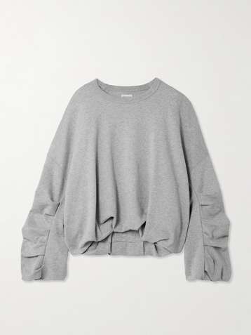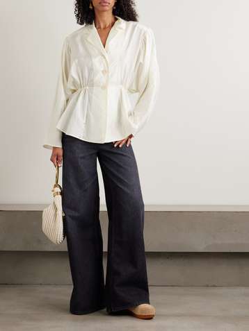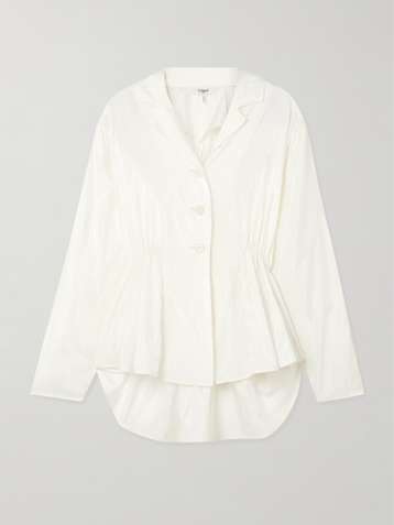 Stiles cropped gathered ribbed-knit trimmed cotton-poplin shirt