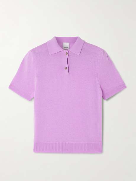 Allude's polo sweater brings a refined ease to everyday knitwear. Spun from certified cashmere, it features a classic collar and short sleeves with a softly structured fit that feels both polished and relaxed.