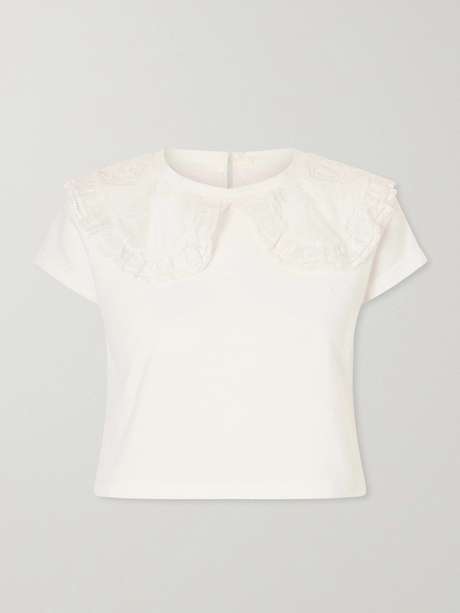 Anna Sui infuses everyday pieces with a touch of vintage romance. This T-shirt is cut from soft jersey in a relaxed silhouette, finished with delicate lace trim that frames the neckline with feminine softness.