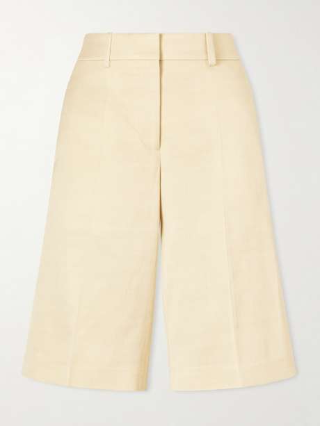 Another Tomorrow's shorts are made from certified twill in a soft, buttery shade. Cut in a relaxed, straight-leg fit, they break just below the knee, so they're perfect for transitional temperatures. Style yours with the coordinating blazer and mules.