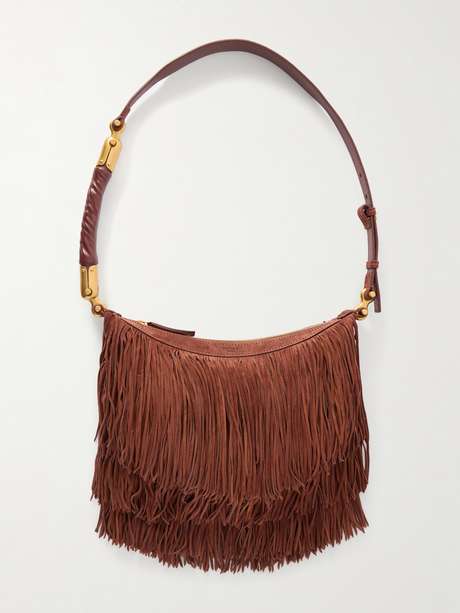 Balmain's 'Ebene' shoulder bag will add a bohemian touch to your everyday outfits. Made from suede with leather trims, it’s covered in fringe detailing and has an adjustable shoulder strap finished with gold-tone hardware. It will fit your essentials, plus a makeup bag.
