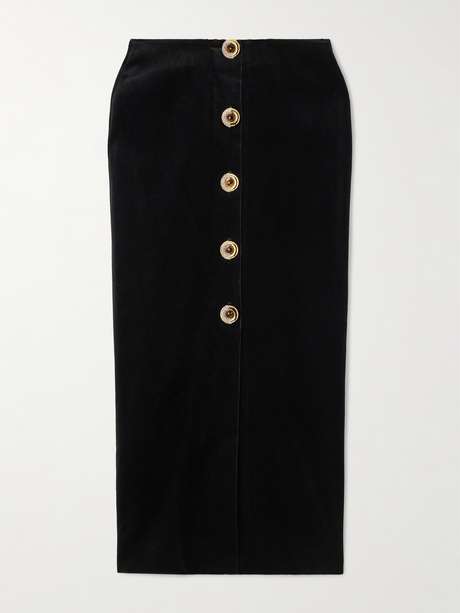 You can always expect exceptional tailoring from BLAZÉ Milano. This 'Jealousy Sussex' skirt is made from cotton-velvet and detailed with crystal-embellished buttons down the center. Pair it with the matching vest.