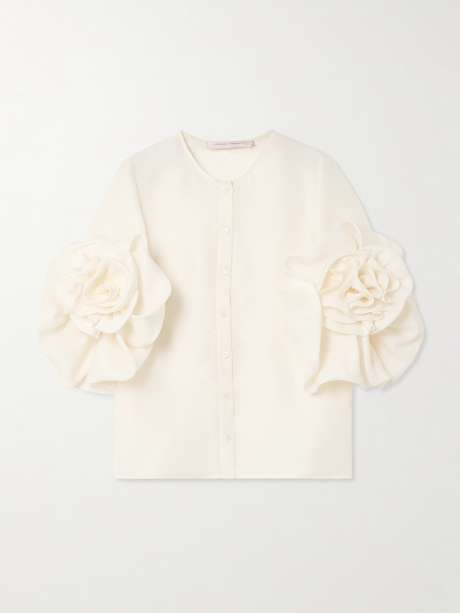 Carolina Herrera's blouse is defined by its voluminous gathered sleeves. It's cut from smooth structured silk and has tonal buttons through the front. Tuck yours into tailored pants.