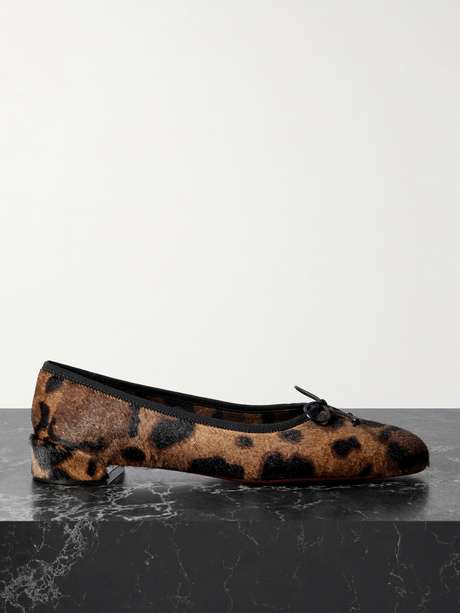Christian Louboutin's 'Sweetie Jane' flats offer a bolder take on classic ballet styles. Crafted in Italy from leopard-print calf hair, they're detailed with grosgrain piping slim leather bows. The 25mm block heels are covered in the same fabric for a streamlined feel.