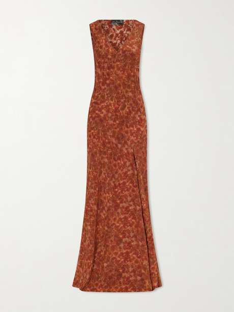 Crafted from fluid silk, the 'Irina' dress by Cortana features a softly diffused print that enhances its elongated silhouette. Its graceful drape and understated design evoke a poetic elegance with a distinctly modern sensibility.
