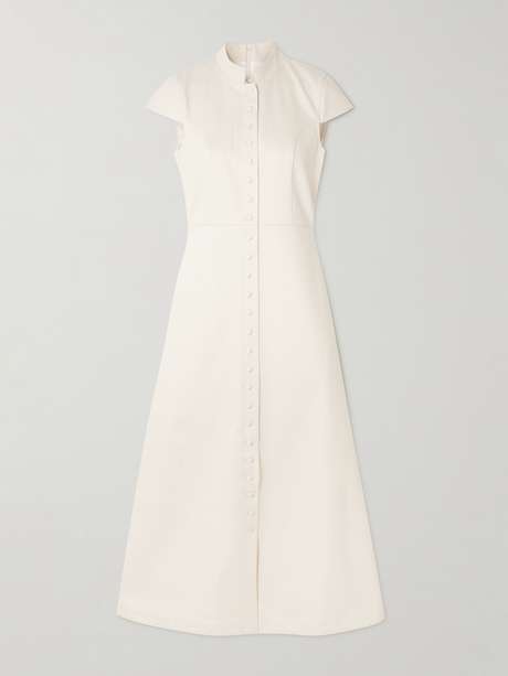 The refined silhouette and denim fabrication means DESTREE's 'Amaoko' dress feels cool and fresh. It's tailored with vintage-inspired cap sleeves and covered buttons down the front.