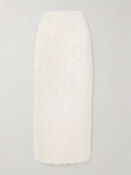 DESTREE Monica frayed organic cotton-twill midi skirt