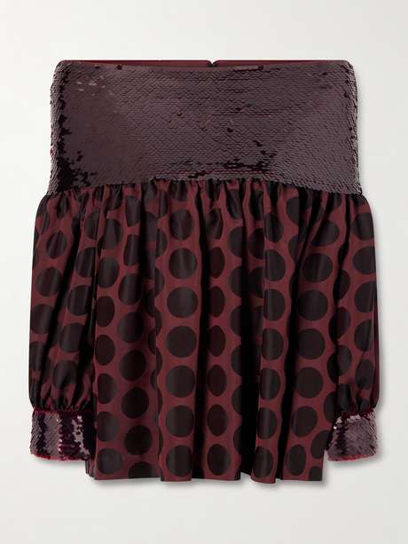 DIMA AYAD Off-the-shoulder sequin-trimmed polka-dot faille blouse