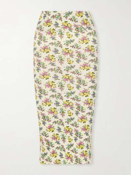 DOLCE&GABBANA Floral-print ribbed-knit midi skirt