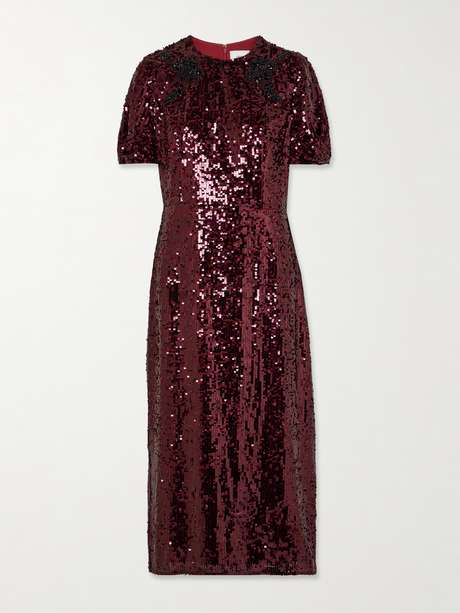 From the deep burgundy shade to the scores of light-catching sequins, Erdem's dress couldn't be more perfect for the party season. It's cut from georgette in an elegant column silhouette and embellished with black crystal florals at the top for an extra dose of sparkle.