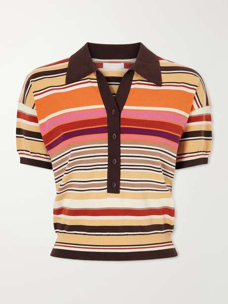 FAITHFULL Sable striped cotton-blend polo shirt