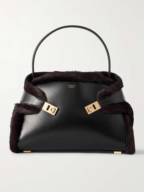 As if the cocooning 'Hug' silhouette of Ferragamo's bag was not enough, the label adds shearling trims this season for added cosiness. It's been made in Italy from smooth leather and designed with 'Gancini' buckle straps you can undo for easy access at the top. The medium size has space for your phone, wallet and tablet.