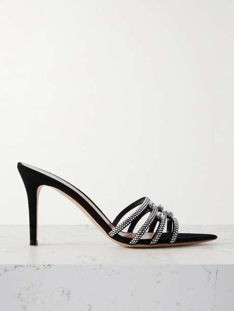 Gianvito Rossi's sandals have slim straps saturated with sparkling crystals, so they'll add extra glamour to your evening looks. They've been handmade Italy from suede with elegant pointed toes and 85mm stiletto heels.