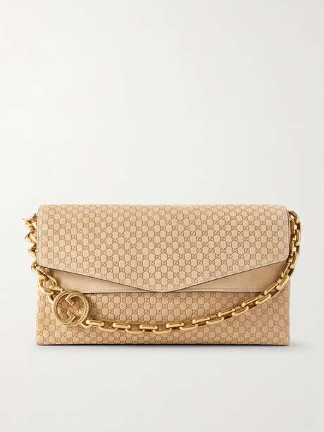 A closer look at Gucci's shoulder bag reveals it's debossed all over with the house's iconic 'GG' monogram. It's crafted from suede and fixed to a gold-tone chain strap that includes an archival interlocking 'G' moniker. You'll find inside deceptively spacious - it will easily fit your daily essentials and a journal.