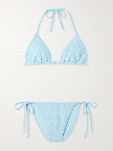 Hunza G's 'Gina' bikini is embellished with beads that twinkle in the sunlight. It's made from the brand's signature Original Crinkle™ and has adjustable ties.