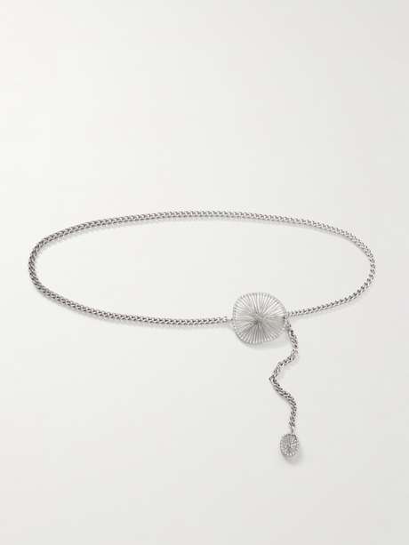 Treat Isabel Marant's 'Vildya' belt like an extension of your jewelry. It's made from silver-tone metal with curb chain links and intricate circular motifs traced with light-catching crystals. Use yours to cinch the waist of a blazer.